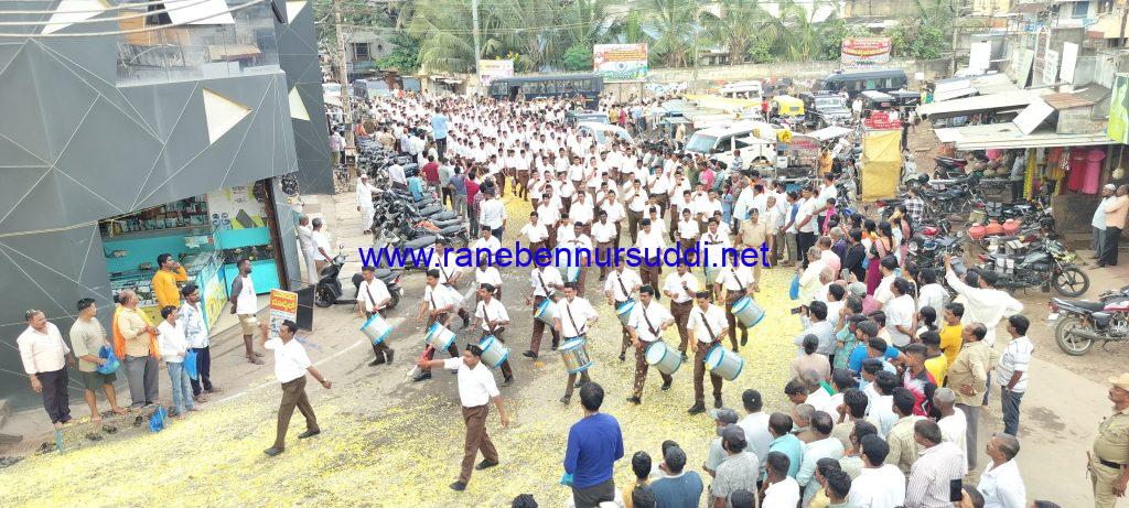 ರಾಣೆಬೆನ್ನೂರ:ಆರ್ ಎಸ್ ಎಸ್ ಸಂಘಕ್ಕೆ ನೂರು ವರ್ಷಗಳು ತುಂಬಿದ ಪ್ರಯುಕ್ತ ರವಿವಾರದಂದು ನಗರದಲ್ಲಿ ಸಹಸ್ರಾರು ಸೇವಕರೊಂದಿಗೆ ಬೃಹತ್ ಪ್ರಮಾಣದಲ್ಲಿ ಕಿಲೋಮೀಟರ್ ಗಟ್ಟಲೇ ಉದ್ದದ